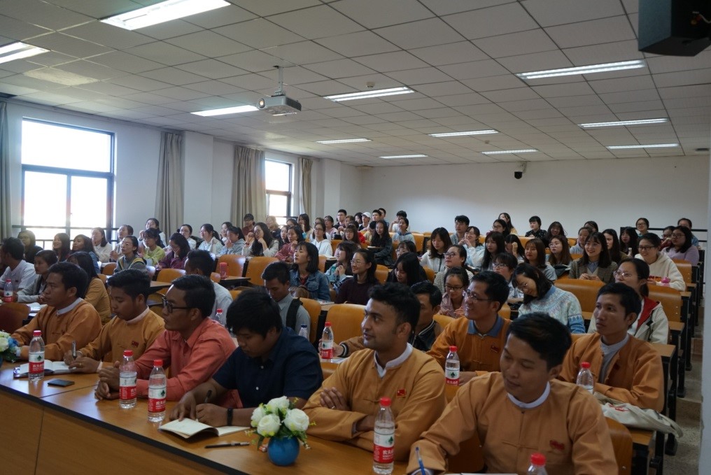 2018年10月16日下午,缅甸民盟青年骨干与云南大学外国语学院缅甸语专业学生交流座谈会在云南大学呈贡校区举行。缅甸执政党民盟青年代表、缅甸研究院老师、云南大学外国语学院缅甸语专业全体教师和本科学生参与了此次交流会。