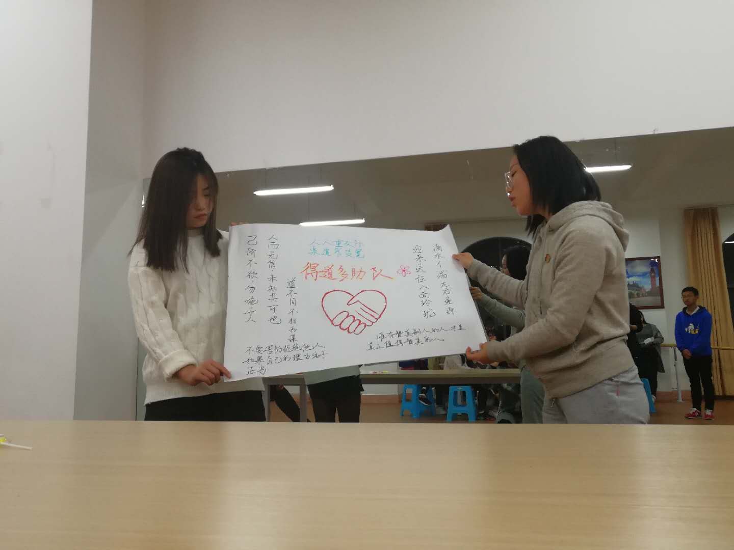 19:00学院师生活动中心站满了上课的学生,经过询问得知,不止有外国语学院的同学,其他学院的同学也慕名而来,对这个课程充满好奇与期待。