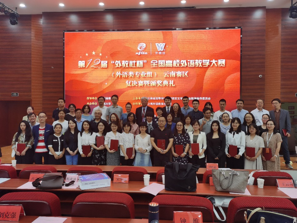 6月5日至6日,由云南省教育厅指导、云南省高等学校外国语言文学类专业教学指导委员会主办的第十二届“外教社杯”全国高校外语教学大赛(外语类英语专业综合课组)云南赛区复赛和决赛在云南大学举办。本次赛事由云南大学外国语学院承办,全程得到了云南大学校领导和诸多领导部门的大力支持,特别是得到了本科生院的全面指导和大力支持,使得赛事得以满举行。云南省高等学校外国语言文学类专业教学指导委员会主任、云南农业大学副校长唐滢教授在百忙之中莅临本次赛事的闭幕式,并发表致辞。唐滢主任祝贺本次赛事圆满举行,充分肯定赛事所取得的优异成绩和意义,并感谢参赛选手、赛事承办单位和合作单位为本次赛事所做出的贡献。