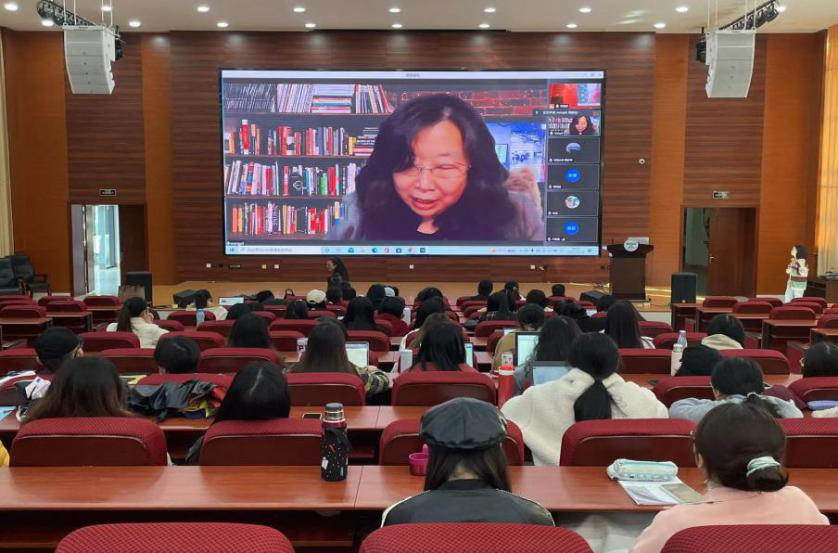12月15日下午,应云南大学外国语学院欧亚语言文学系邀请,北京语言大学法语系主任、博士生导师王秀丽教授通过腾讯会议平台为我院师生作了一场精彩的学术讲座,主题为“基于学生翻译问题的对外语⼈才培养的反思”。讲座由欧亚语言文学系主任孙芳副教授主持;法语专业教师、研究生及本科部分学生在外国语学院一楼报告厅参加此次线上学术讲座。