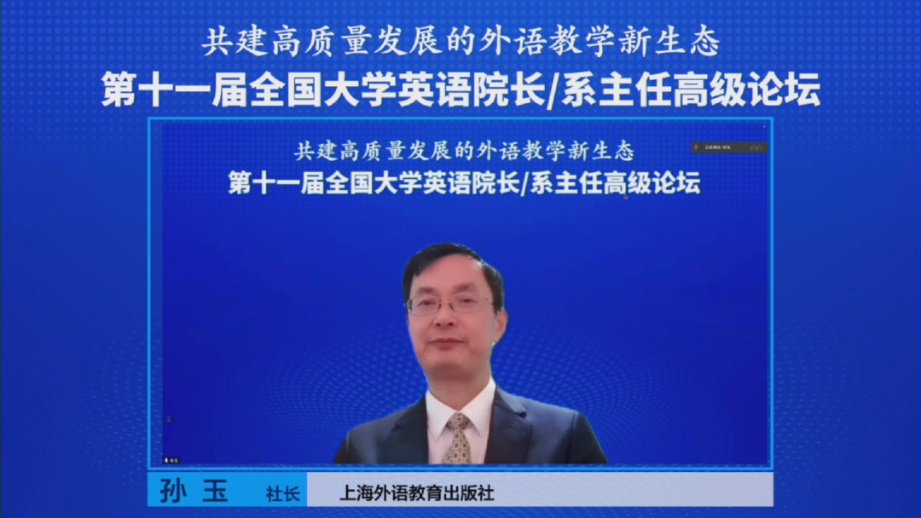 在论坛闭幕式上,上海外语教育出版社孙玉社长代表本次论坛的承办方致辞,对本次参加论坛的主办单位领导、主讲专家、参加本次论坛的各位老师和工作人员表示衷心的感谢。因为疫情的阻碍,大家无法在“七彩云南,古滇名城”的美丽昆明相聚,但是本届论坛线上参与人数众多,宾朋满座,学术思想在云端交汇和深化,也弥补了不少遗憾。