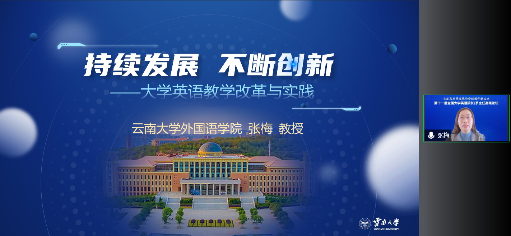 我院大外一部主任张梅教授应邀在平行论坛(一)做了题为“持续发展、不断创新——大学英语教学改革与实践”的发言。首先,张梅教授介绍了云南大学大学英语课程体系的三个改革阶段:改变传统教学模式、通用英语+学术英语模式、1+2模式,在此基础上分析了了云南大学大学英语如何进行多元化的改革,力求使大学英语课程在课程体系和教学模式上有所突破,探索聘任外籍师资以及如何更好地发挥英语为母语的教师在大外英语教学中的作用,以便使得大外英语教学更高地服务于学校和国家的发展需求。