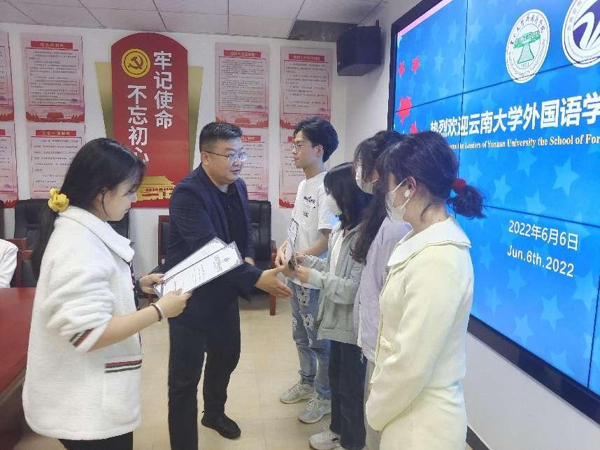 为持续贯彻落实教育部“全国高校书记校长访企拓岗促就业”专项行动的相关要求,应对疫情对毕业生就业带来的影响,抢抓毕业生求职黄金期、冲刺期,加快促进毕业生实现顺利就业。2022年6月6日下午,在云南大学外国语学院党委书记王益广、党委副书记何淼淼一行前往云南融智跨境人才服务有限公司开展访企拓岗活动。就继续深化长远合作、复合型人才培养、产学研思路探索等进行了深入交流。