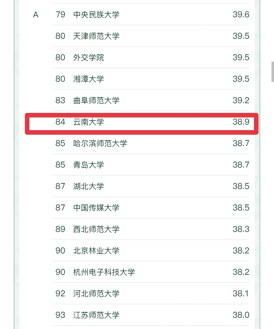 云南大学外国语学院英语专业的软科排名84位,远超其他院校,位列云南第一。