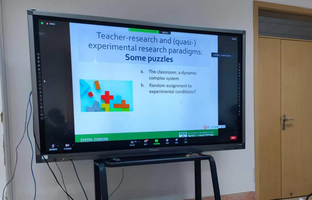 4月29日,我院成功举办了“东陆国际名师讲坛”(四),邀请新西兰惠灵顿维多利亚大学语言和应用语言学院教授、博士生导师Jonathan Newton作为主讲嘉宾,我院硕士生导师李佳博士担任点评嘉宾。该讲座采用线上和线下参与的形式同步举行,我院英语系教师孟娜主持,谢萍副院长和我院师生莅临现场。