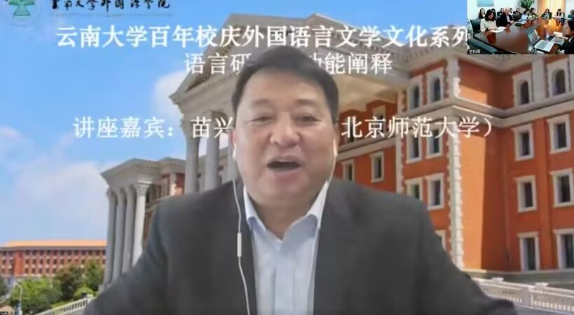 2022年12月2日,北京师范大学外文学院教授、博士生导师,院长苗兴伟教授应邀为我院师生做了题为“语言研究的功能阐释”的精彩讲座。本次讲座是“云南大学百年校庆外国语言文学文化系列讲座”暨“云南大学英语语言文化与翻译研究中心系列讲座”之一。