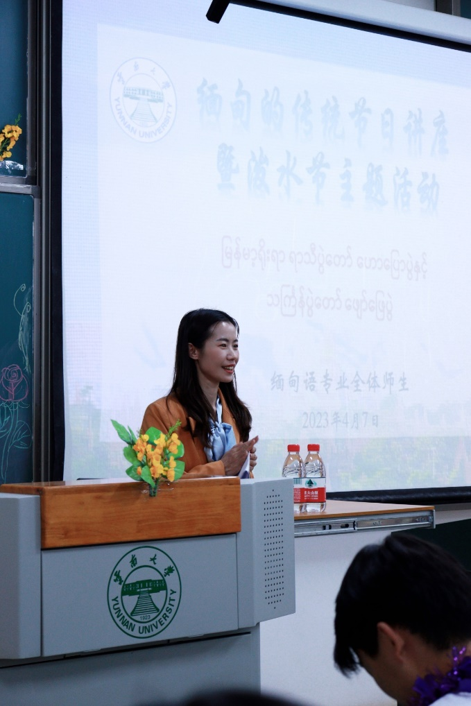 2023年4月7日下午,云南大学国际合作与交流处与云南大学外国语学院联合举办了“缅甸传统节日”讲座暨泼水节主题活动。本次讲座由云南大学外国语学院缅甸语专业外籍专家吴哥雷教授主讲。