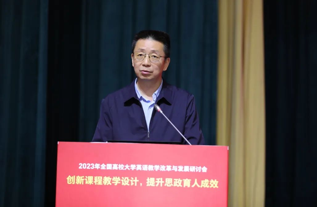 吴涧副校长受云南大学党委林文勋书记、云南大学校长方精元院士的委托,代表云南大学致辞,他向线下线上参加本次研讨会的诸位领导、专家学者和嘉宾表示欢迎,感谢大家的支持。他认为,本次研讨会是高等大学外语教育界一年一度的盛会,对于助力全国高校大学英语教育事业建设与发展具有深远意义。云南大学大学英语教学历经了百年发展,形成了具有特色的人才培养模式,为全校各学科专业本硕博人才培养提供了不可或缺的支持与贡献。在2017年云南大学获批为教育部首批“双一流”建设大学之后,大学英语进行了一系列改革,包括改革课程体系、促进教学与科研融合,以及聘任母语为英语的外籍教师等举措,在教学科研方面均取得了良好成效。今年正值云大百年华诞,云大将以习近平总书记致云南大学建校100周年贺信精神为指引,铸牢中华民族共同体意识,落实为党育人、为国育才,进一步促进大学英语的改革发展,为云南大学新一轮“双一流”建设做出新的贡献。