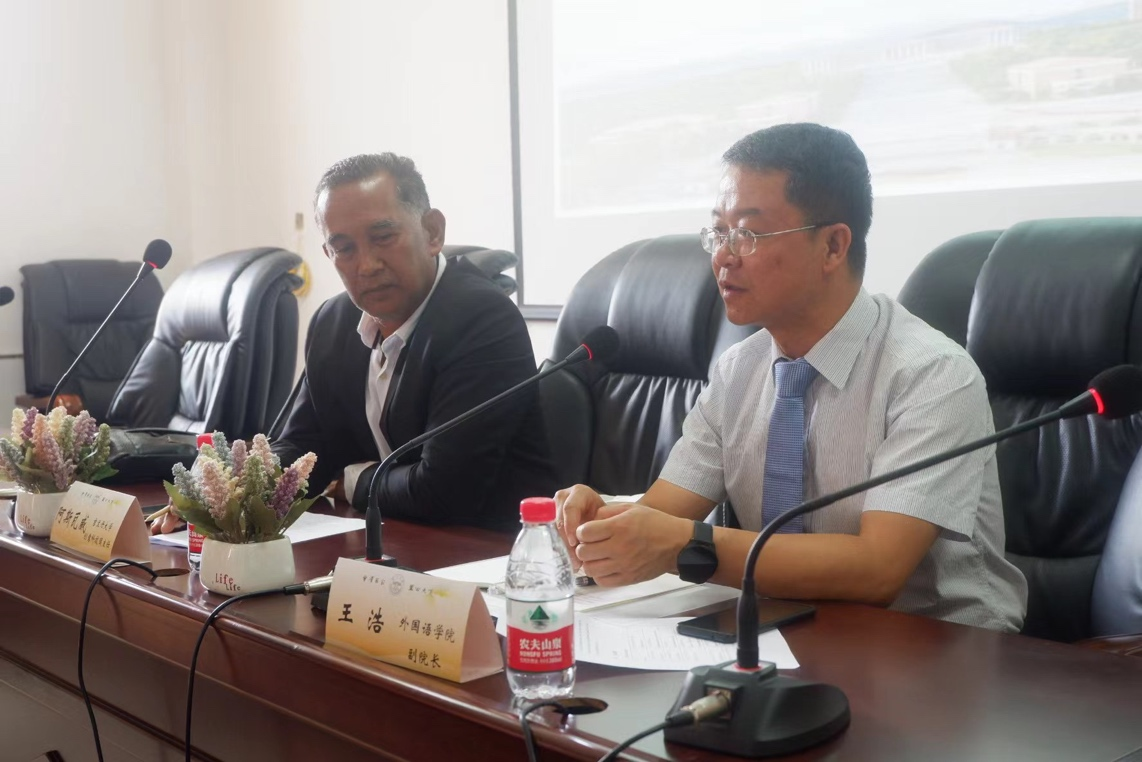 外国语学院副院长王浩在致辞中表示,马来西亚吉兰丹大学代表团是疫情放开以后第一个访问云南大学外国语学院的马来西亚高校代表团,本次访问是双方期待已久、具有深远意义的一次活动。马来西亚吉兰丹大学是马来西亚的第十九所公立大学,被称作具有创业精神的大学,在职业教育与培训、创意艺术、语言教育、生态保护等领域颇有建树,与云南大学的多个学科领域存在巨大的合作空间,希望通过本次座谈会,双方能增进彼此了解,进一步加深合作。