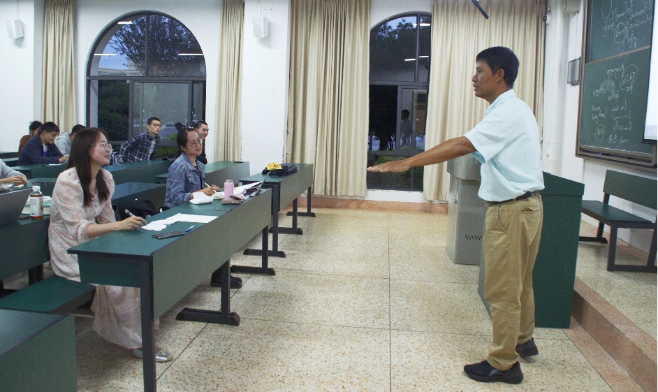 本次讲座由云南大学外国语学院缅甸语教研室主任庞俊彩老师主持。讲座期间,吴哥雷教授给大家讲解了“မင်္ဂလာပါ”“နေကောင်းရဲ့လား”“ကန်တော့”等缅甸日常生活中常用的问候用语,并亲身示范,生动地演示了该类用语正确的使用场景。