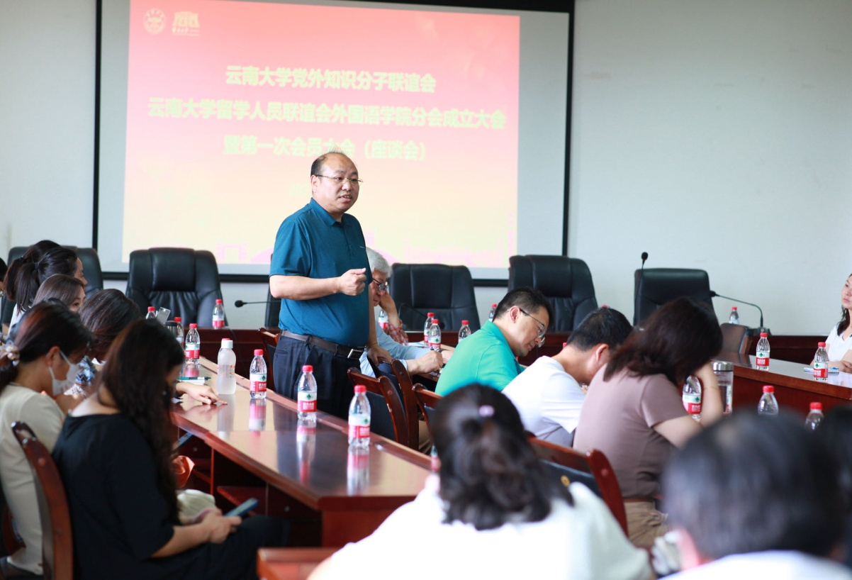 2023年6月2日,云南大学党外知识分子联谊会外国语学院分会、留学人员联谊会外国语学院分会成立大会暨第一次会员大会(座谈会)在外国语学院会议室圆满举行。校党委常委、统战部部长高小秦,统战部相关负责人到会指导,外国语学院领导班子及学院党外知识分子、留学归国人员参加会议,外国语学院党委副书记何淼淼主持大会。