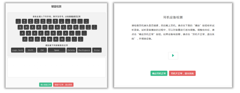耳机要求:无需准备耳机,检测环节正常检测即可