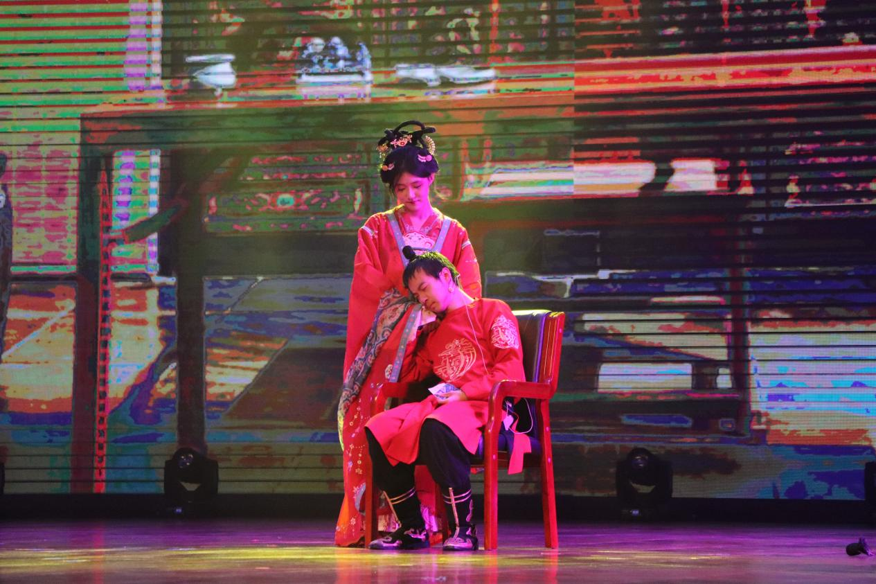 神女劈观:华夏文明五千载,孕育了丰富的文化盛宴。同学们用京越戏歌的特殊方式演绎了神女劈观这一节目,戏韵十足,融合现代元素的韵律,赢得了阵阵喝彩。纵然前程似梦不可追,但来日方长,莫愁前路无知己,人们总会找到志同道合之友把酒言欢。