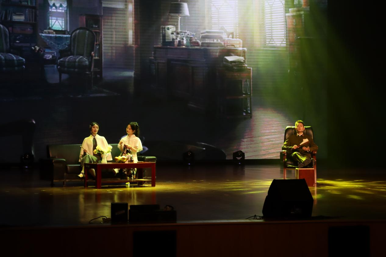今夜我们从这里乘着语言的小舟出发,随戏剧之河,感悲欢喜乐、悟精神伟力。将来我们希望挂起语言的云帆,向世界远航!去讲述中国故事,去发出我们的声音!外院学子更应以扎实学识为本,学贯中西,会泽百家。更当以伟大复兴为任,挺膺担当,致公天下。