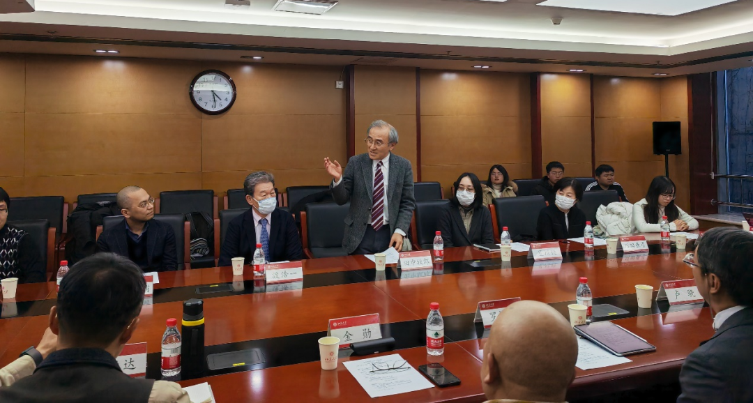在集体讨论环节,围绕报告的主题,来自三所高校的师生展开了热烈的提问和讨论。最后,在本次学术集会的总结环节,北京大学的孙建军教授、明治大学的田中牧郎教授、云南大学的罗椿咏教授依次致辞,对本次会议的内容进行了回顾,肯定了本次集会为国际日本学研究提供了很好的合作交流的平台,并表达了对未来进一步深化高校之间学术交流的美好展望。