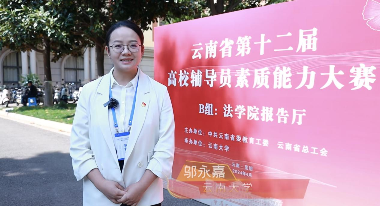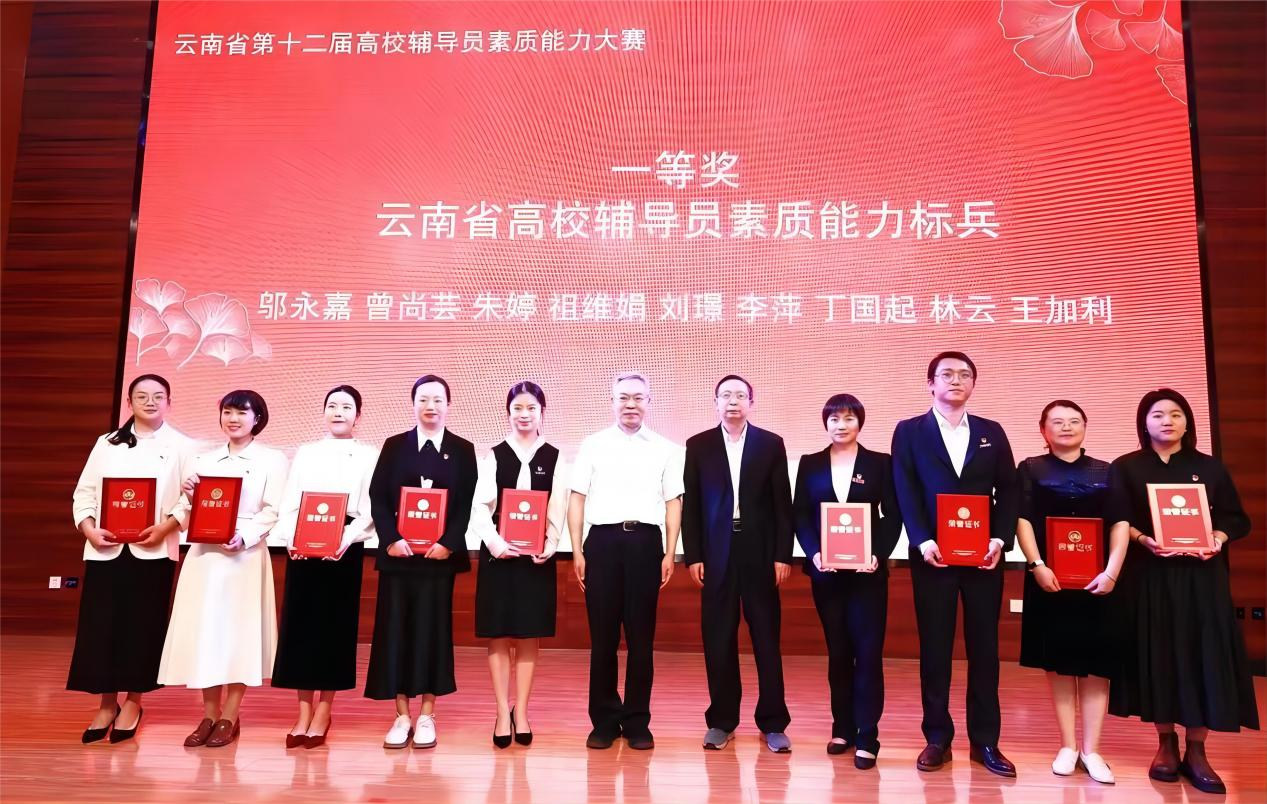 其中,我院辅导员邬永嘉老师在比赛中斩获一等奖,并被授予“云南省高校辅导员素质能力标兵”称号。