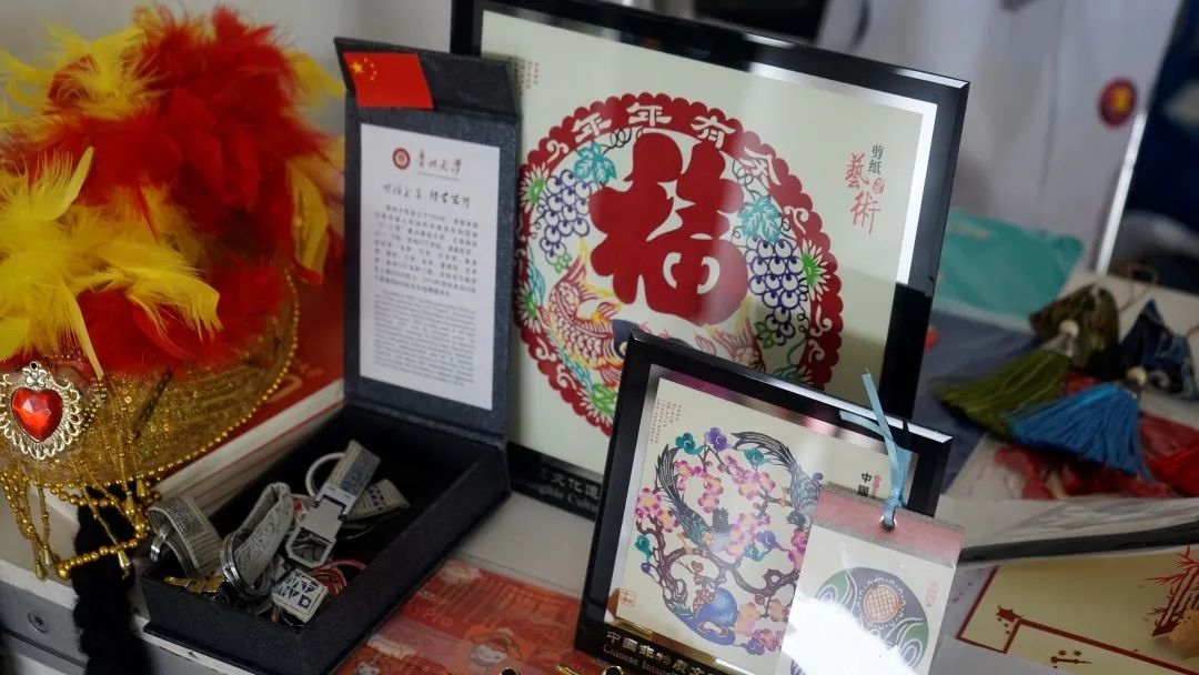 在活动开幕式上,谢欣彤同学与各青年代表团同学协作表演了声乐联唱、器乐合奏、舞蹈串烧等节目。在学术论坛上,谢欣彤同学还以“非艺术专业的同学如何传承和保护传统文化艺术”为题进行了互动交流。在艺术与文化集市中的中国展台,谢欣彤同学向国外青年展示了云南大学书签、明信片、纪念币、云大剪纸画等百年校庆系列文创产品。