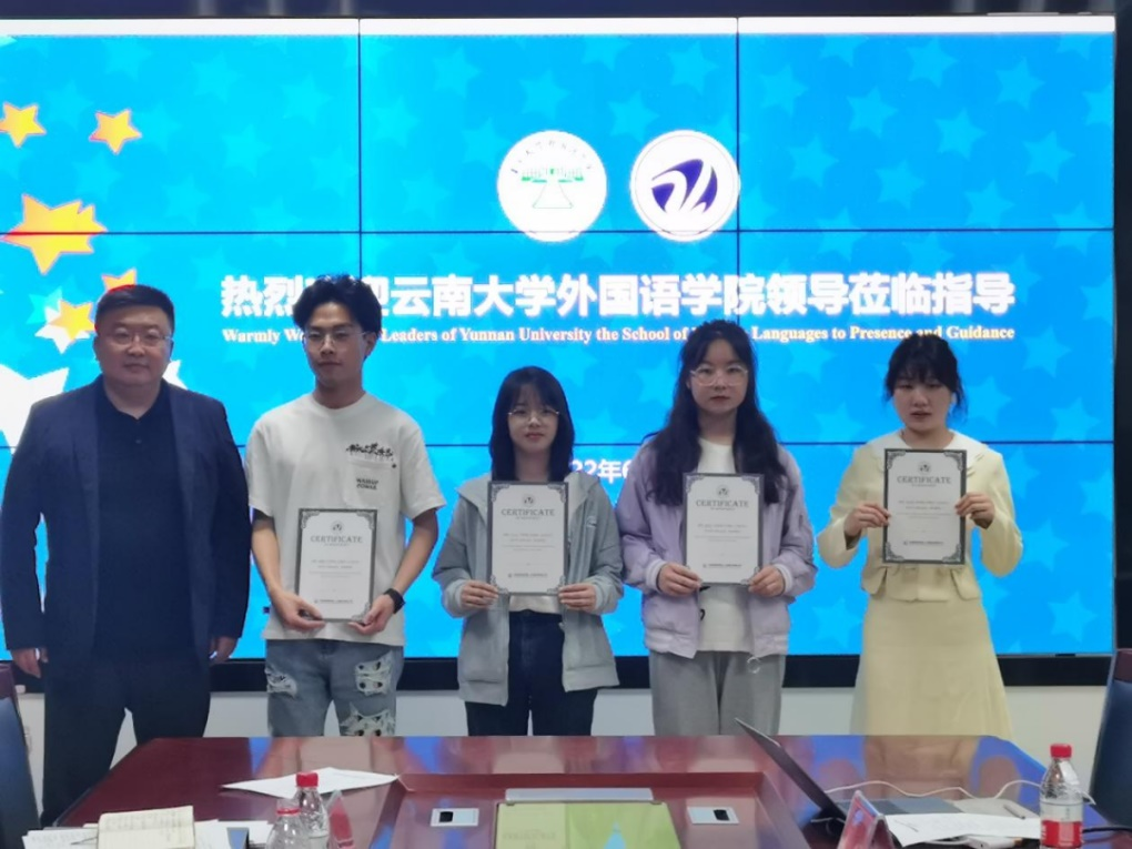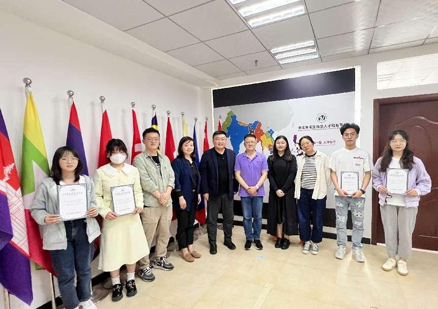 中国国际商会云南商会副会长、东南亚南亚跨境人才服务平台创始人鲁进京、云南融智跨境人才服务有限公司王福燕、董信吟、阮雅年,跨境人才服务(云南)合作中心学生团队新晋成员以及学院师生代表20人出席了本次会议。