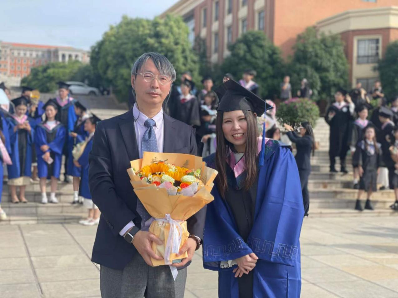 2024年春季学期,云南大学外国语学院迎来了一个具有里程碑意义的时刻。由罗椿咏副教授指导的日本籍硕士研究生仲村仁惠同学圆满完成学业,成为云大百年历史上外国语言文学学科授予学位的第一位外国留学生,也是国内高校日语语言文学专业培养的首位日本籍硕士研究生,这不仅是云南大学的骄傲,也是国内高校日语语言文学专业人才培养的一次突破。
