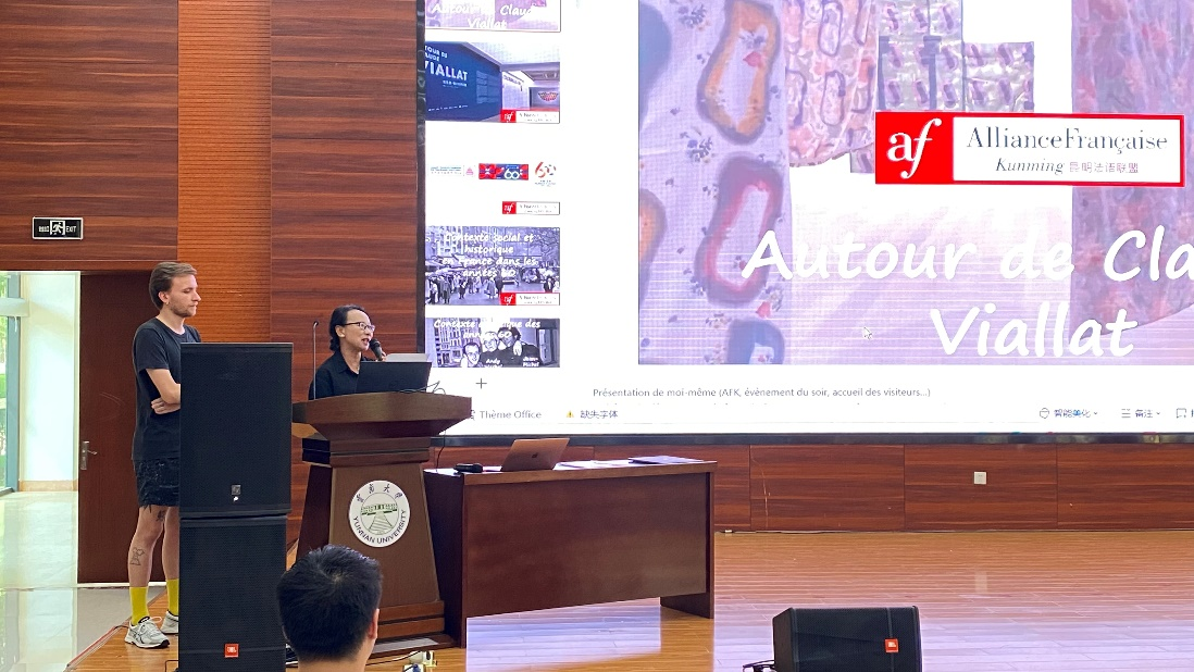 2024年9月20日下午,云南大学外国语言文学学科创新发展法语系系列学术讲座第一期于外国语学院一楼报告厅内顺利举办。本期主讲嘉宾为昆明法语联盟文化推广负责人奥黑亮·克拉夫(Aurélien Krafft),讲座主题为“走近克洛德·维尔拉”(Autour de Claude Viallat)。