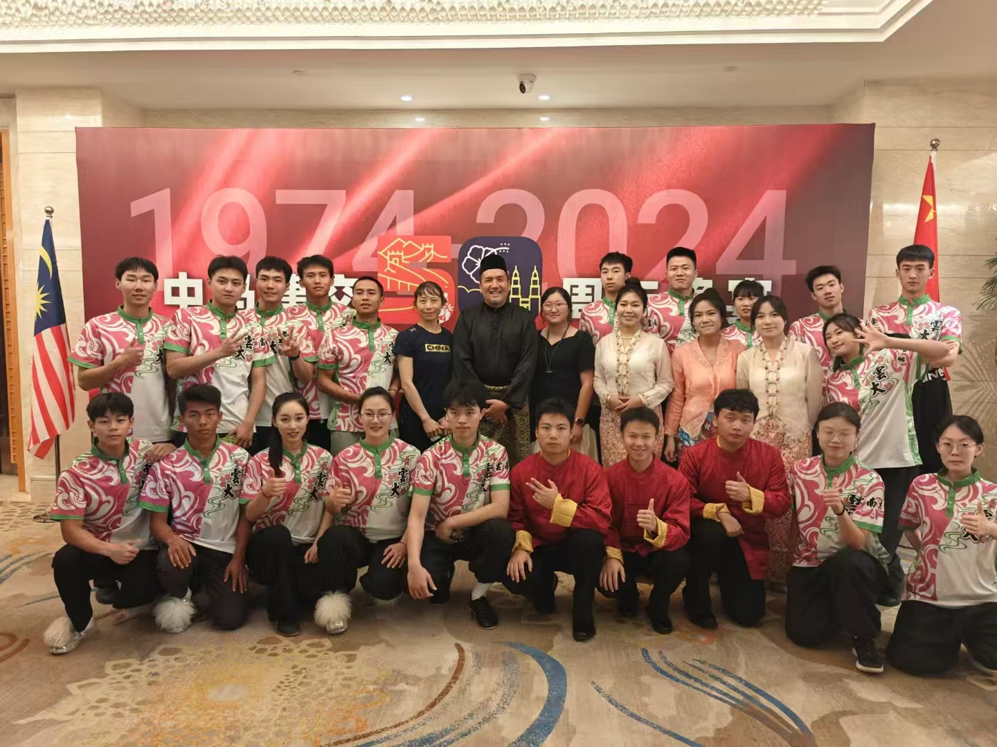 马来西亚驻昆总领事穆罕默德·阿克玛先生(中)在中马建交50周年庆祝活动上与我院马来语专业师生亲切合影