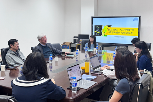 2025年4月25日上午,云南大学外国语学院成功举办“人工智能时代英语专业的高质量发展”圆桌论坛。本次论坛特邀中山大学外国语学院博士生导师、广东省外国文学学会荣誉会长区鉷教授担任嘉宾。我院院长刘树森教授、学院书记王益广教授、副院长骆洪教授、副院长谢萍教授、副院长王浩教授,教育部高等学校英语专业教指委委员徐志英教授等专家学者以及英语系师生代表二十余人参与研讨。