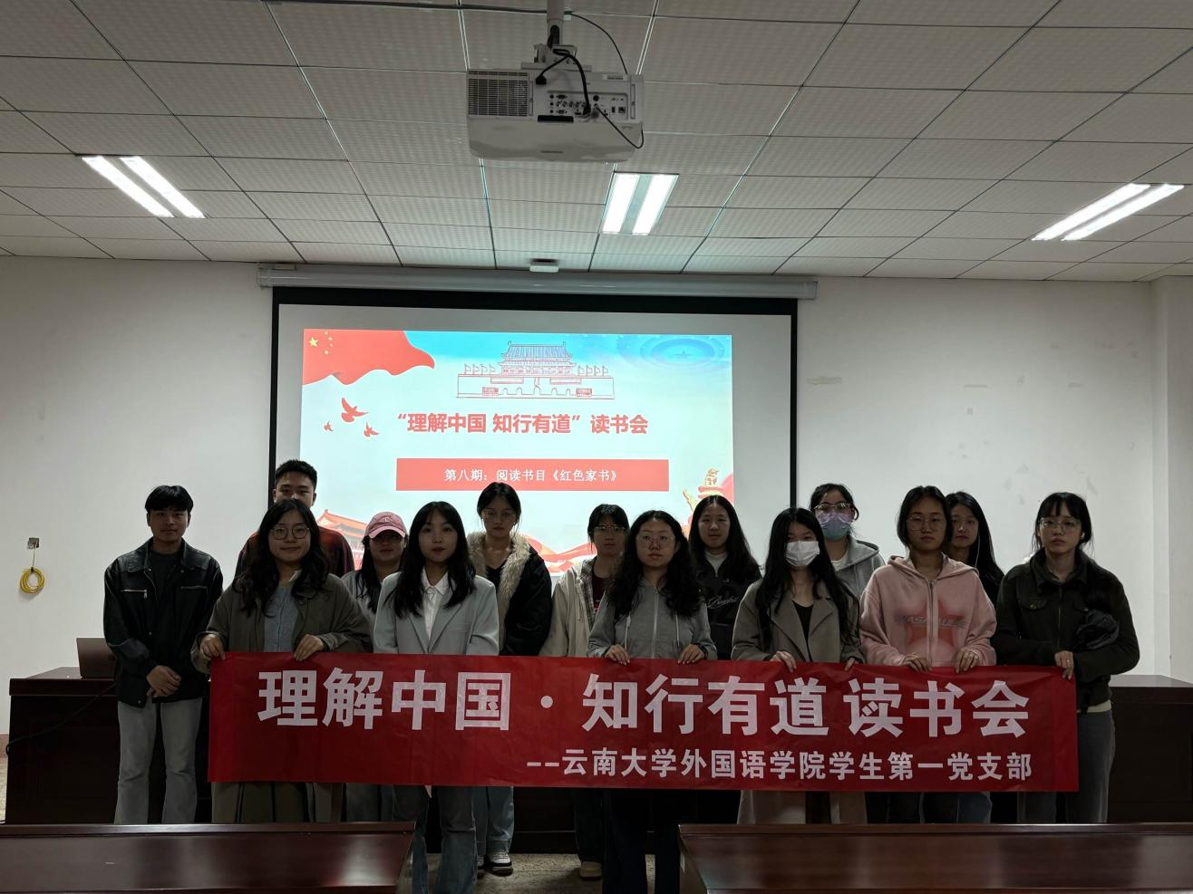 2025年5月27日晚7点,云南大学外国语学院学生第一党支部“理解中国·知行有道”读书会第八期在外院310教室顺利举行。本期读书会以《红色家书》为阅读书目,围绕“初心使命”“家风传承”等核心主题展开,通过诵读家书原文、感悟理想信念、对比家教理念,引导同学们在温情与信仰交织的文字中,追寻革命先辈的精神足迹,体悟家国一体的深厚情怀。