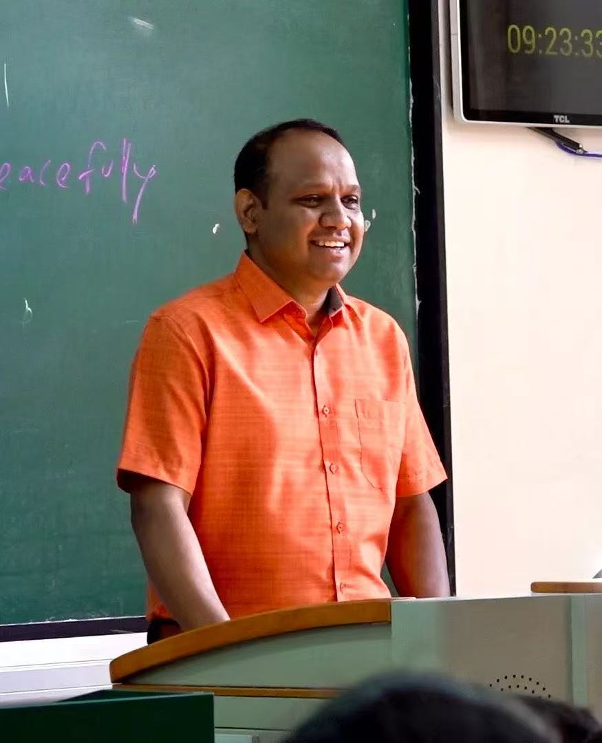 2025年6月12日,苏噶特在云南大学僧伽罗语课堂上授课。陈晨 摄