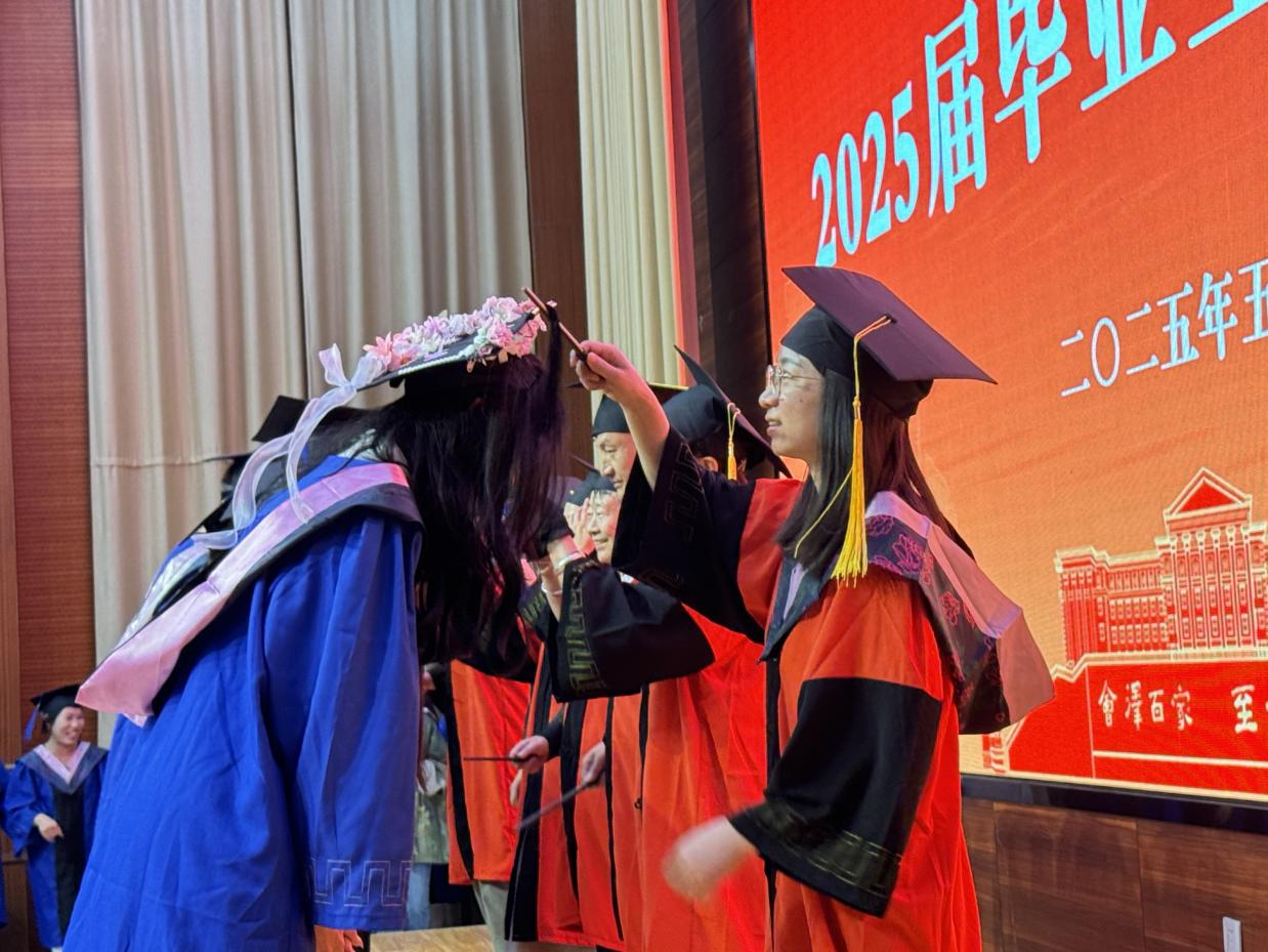 典礼最后,拨穗正冠之礼正式开始。刘树森院长携导师代表们为学子们一一拨穗。此礼既成代表着学子们学业有成,即将翻开人生新篇章。愿众学子承载着母校的祝福与期盼,怀抱梦想,无畏前行,从外院出发,向世界远航!