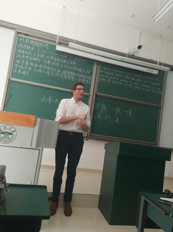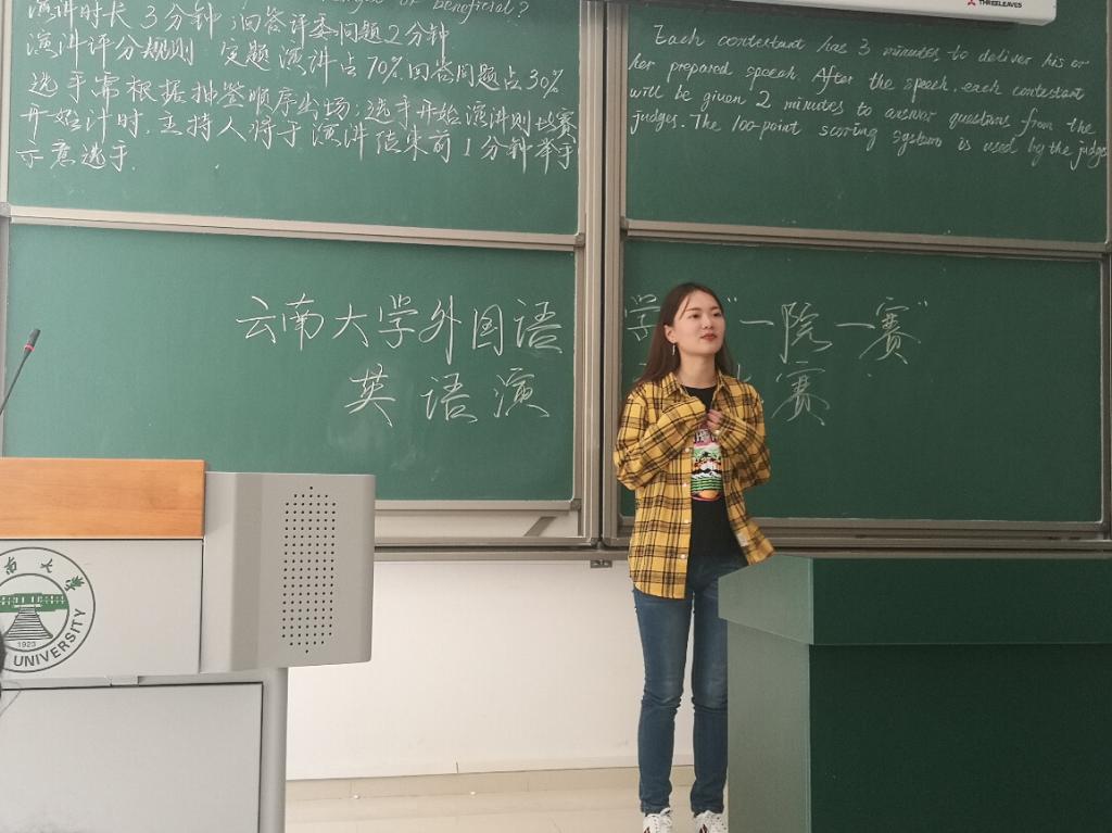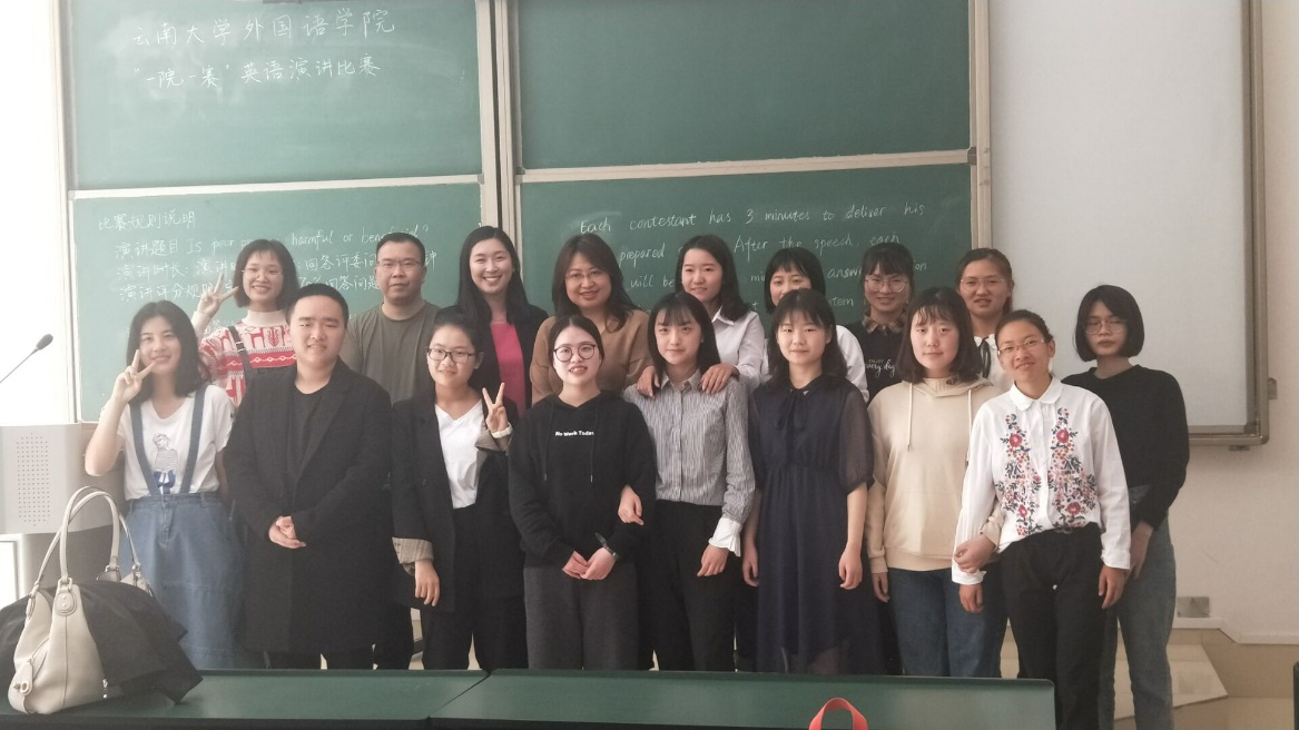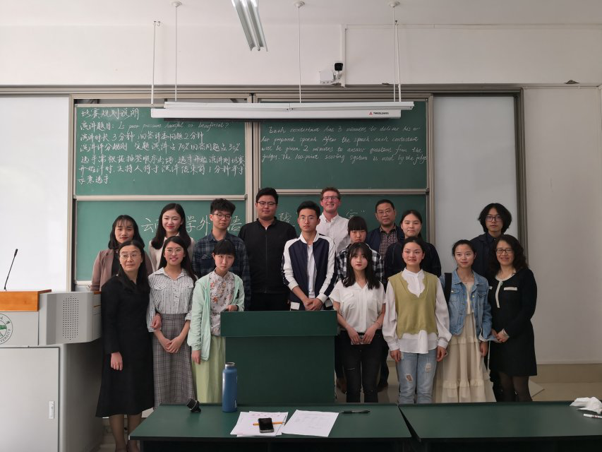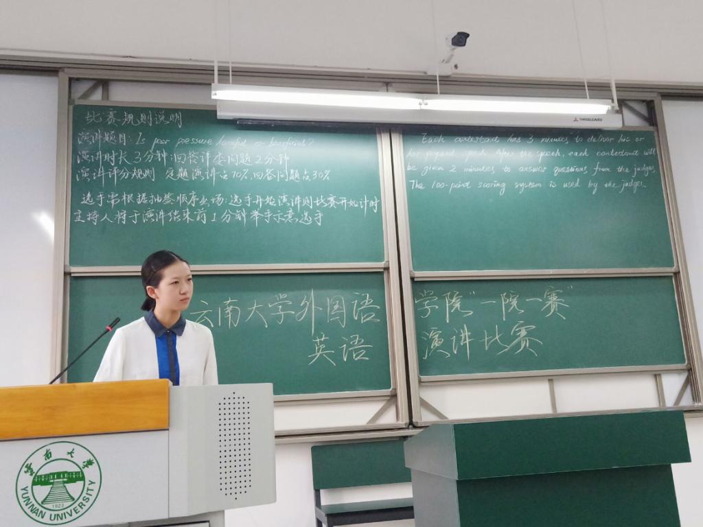 2019年3月29日,云南大学外国语学院英语系进行了以“Is Peer Pressure Harmful Or Beneficial?”为主题的英语演讲比赛。本次比赛旨在激发广大同学学习英语的热情,提高同学对英语的兴趣,营造一个良好的英语学习氛围,为更多的同学提供一个尽情挥洒创意、展现英语风采的舞台。英语系的演讲比赛分为五个赛场,英语系共有62名本科生和研究生参赛。学院领导、英语系老师及外教参加了本次活动,担任各赛场的评委。