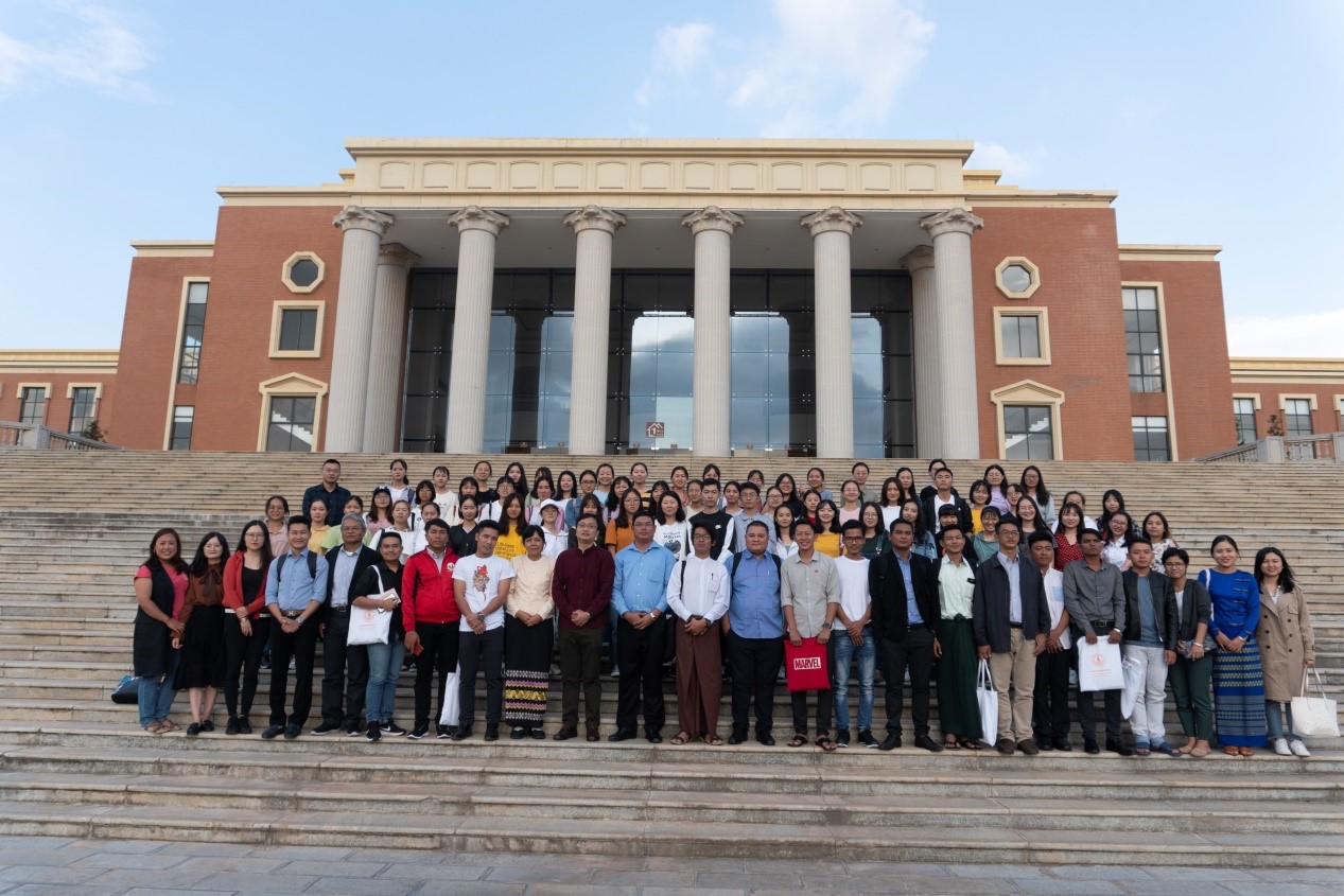 交流会结束后,缅甸语系的部分师生还与杜光民先生及缅甸民盟青年骨干交流研修班的学员们在云南大学学生会堂前留影纪念。本次交流会不仅使同学们在翻译学习方面受益匪浅,也更加深了师生们对翻译工作的理解,同时进一步激发了大家学习缅甸语的热情。